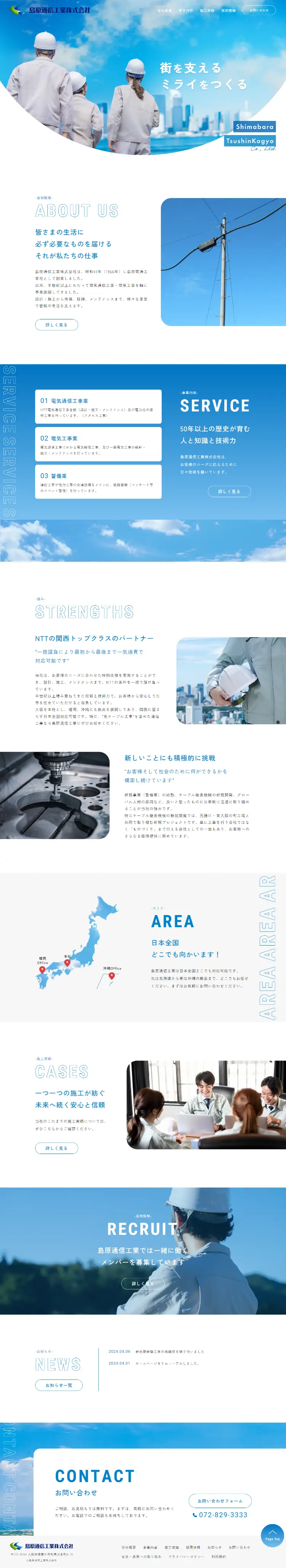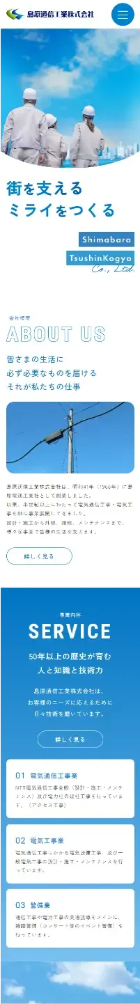 電気通信工事業、電気工事業、警備業を行っている、島原通信工業株式会社様のコーポレートサイトのリニューアルを担当させていただきました。