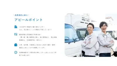 電柱建柱の際に見上げる空を使い、爽やかなイメージを意識しています。わかりづらい事業領域については図に起こすことで視覚的に理解しやすくしています。
