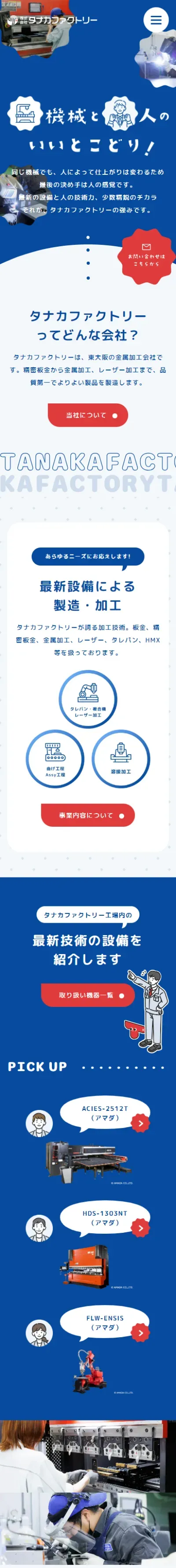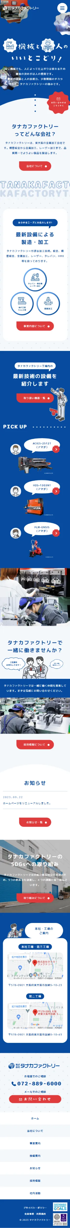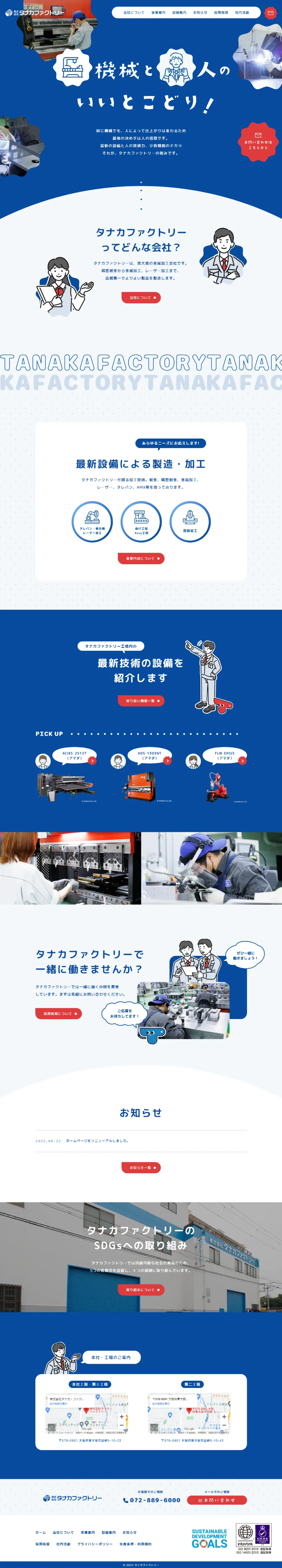 金属加工会社である、株式会社タナカファクトリー様のコーポレートサイトリニューアルを担当させていただきました。